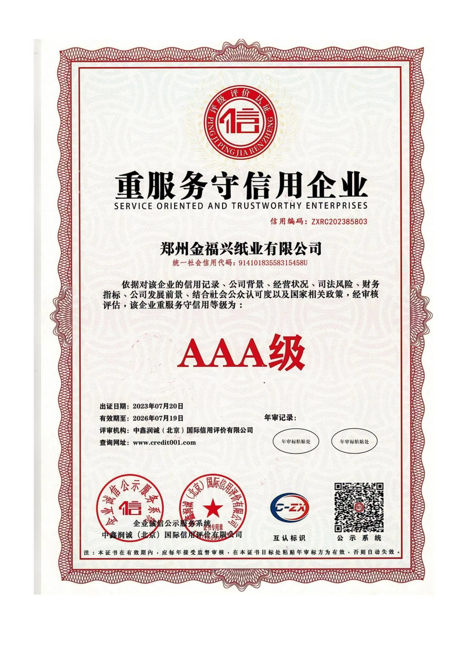 企业资信等级证书